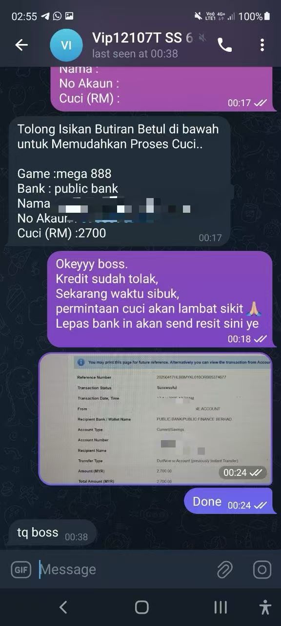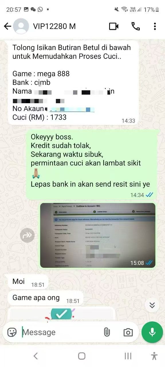 Untuk segala top up & cuci, sila ws melalui nombor baru atau klik butang di bawah. Terima kasih kerana terus bersama kami! 😊